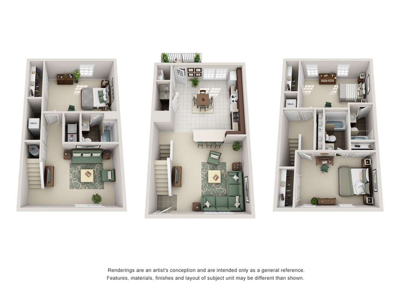 Youʼll find all the space you need and more with our townhome-style apartments, featuring one-bedroom layouts as well as two-, three-, and four-bedroom options. Our floor plans are designed to make focus and fun a snap with convenient perks like private bedrooms and bathrooms, spacious decks, and multiple-level living. Whatever your preferences or needs, Copper Beech has the perfect place for you to call home.